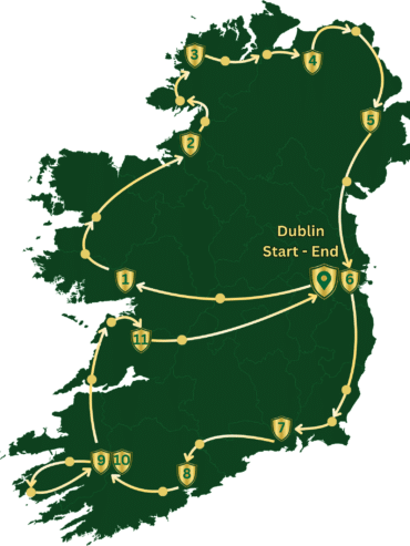 Make a final cultural stop at Dun na Sí Heritage Park, a living celebration of Irish tradition where music, folklore, and crafts echo the heart of the nation. Arrive in Dublin with memories of 12 extraordinary days—where Ireland’s wild landscapes, rich history, and living legends have ignited your spirit.